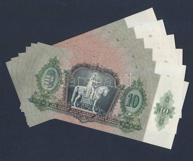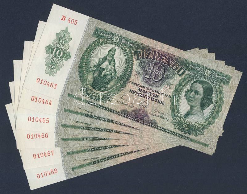 1936. 10P (6x) egymás utáni sorszámokkal T:I https://www.darabanth.com/hu/116-Gyorsarveres/116.0/Numizmatika/Osztrakmagyar-bankjegyek-magyar-es-magyar-vonatkozasu-bankjegyek~332/1936-10P-6x-egymas-utani-sorszamokkal-TI~II303397