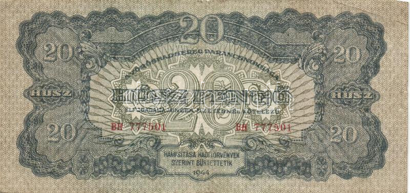 Leírás: 1944. 20P "V. H." egyvonalas számok! T:II-/III+