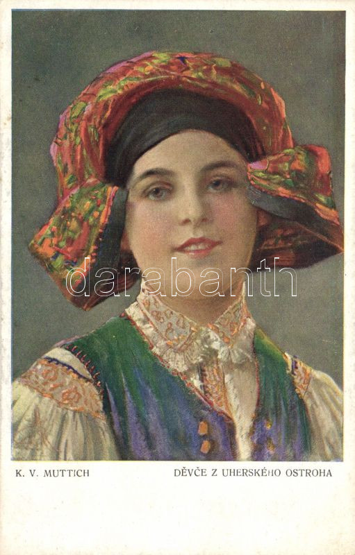 Moravian folkwear from Uhersky Ostroh s: Muttich https://www.darabanth.com/hu/119-Gyorsarveres/119.0/Kepeslapok/Folklor-Folklore~40153/Moravian-folkwear-from-Uhersky-Ostroh-s-Muttich~II319295