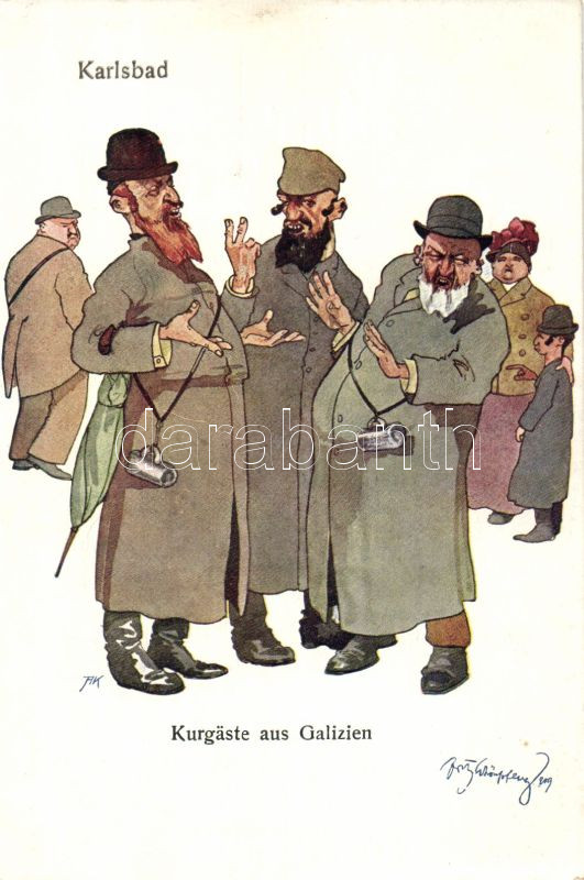 Karlovy Vary, Judaica humour s: Schönpflug https://www.darabanth.com/hu/12-Nagyaukcio/12.1/Motivum-kepeslapok/Judaika~3627/Karlovy-Vary-Judaica-humour-s-Schonpflug~II409243