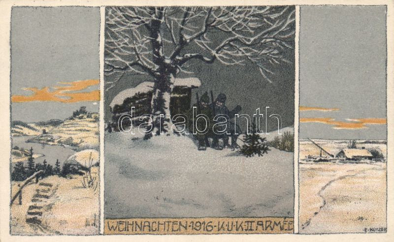 Military WWI Christmas s: E. Kutzer https://www.darabanth.com/hu/12-Nagyaukcio/12.1/Motivum-kepeslapok/Katonai~3611/Military-WWI-Christmas-s-E-Kutzer~II414425