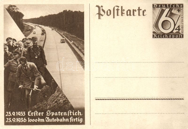1936 1000 kilometers of German motorways, Hitler propaganda https://www.darabanth.com/hu/12-Nagyaukcio/12.1/Motivum-kepeslapok/Propaganda~3620/1936-1000-kilometers-of-German-motorways-Hitler-propaganda~II417237