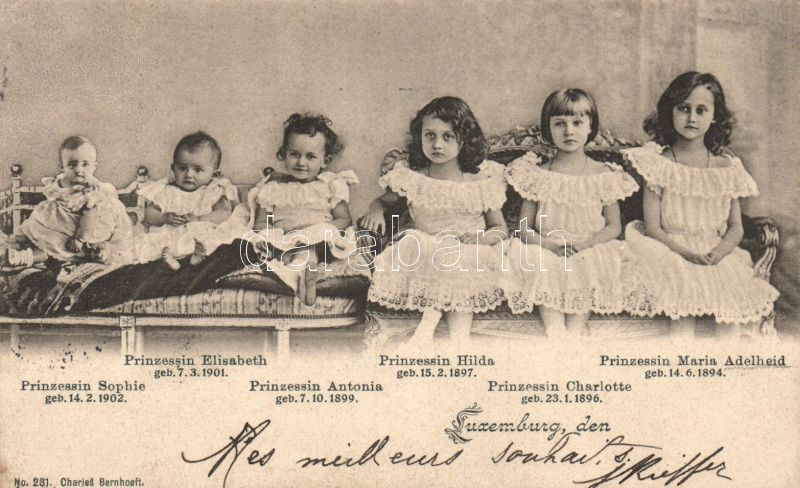Luxembourg Royal Family, little princesses https://www.darabanth.com/hu/12-Nagyaukcio/12.1/Motivum-kepeslapok/Uralkodo-Politikus~3632/Luxembourg-Royal-Family-little-princesses~II415797