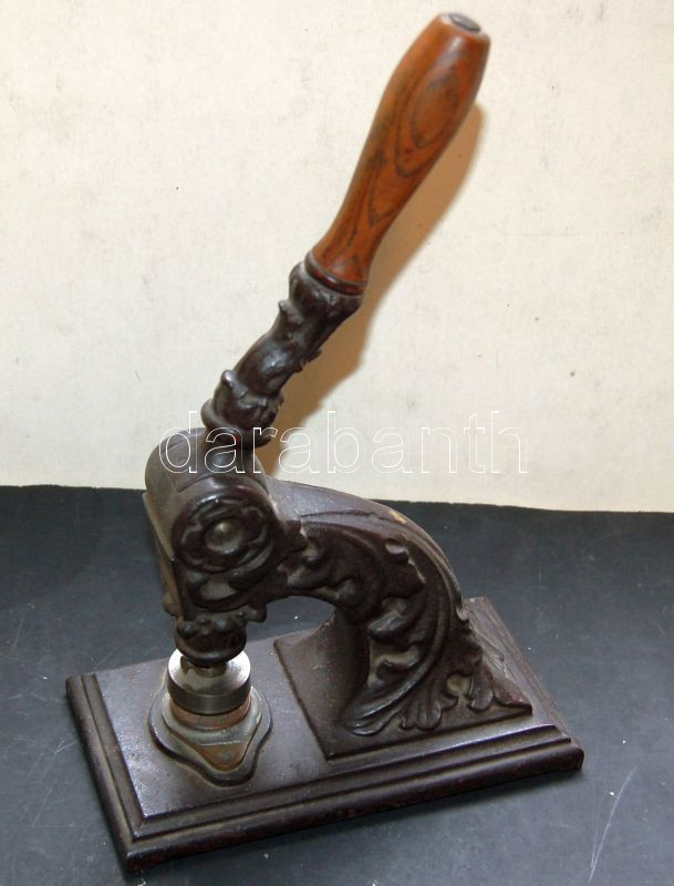 XIX. század végi öntöttvas szárazpecsét-nyomó gép, a nyomófej később ... https://www.darabanth.com/hu/120-Gyorsarveres/120.0/Festmeny-mutargy-papirregiseg-egyeb/Bolhapiac-Flea-market~388/XIX-szazad-vegi-ontottvas-szarazpecset-nyomo-gep-a-nyomofej-kesobb-ki-lett-cserelve-~II324026