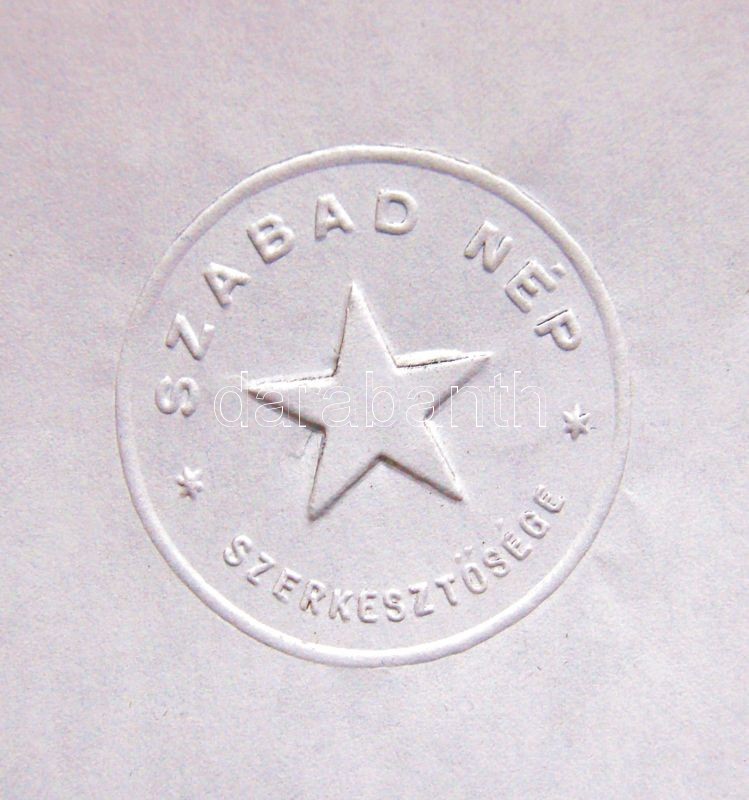 Leírás: XIX. század végi öntöttvas szárazpecsét-nyomó gép, a nyomófej később ki lett cserélve "Szabad Nép szerkesztősége" feliratúra / Dry-seal machine 33 cm