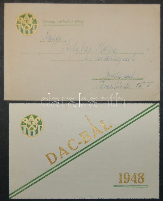 Leírás: 1947 Dorogi Athlétikai Club meghívó és levélboríték