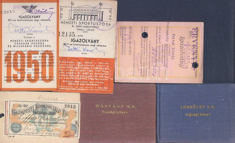 Leírás: 1896-1950 6 db sportigazolvány és belépő közte Budapesti Korcsolyázó Egylet