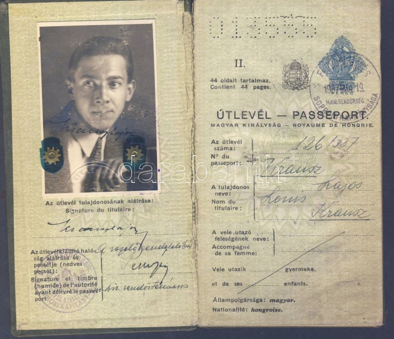 1937 Jó állapotú teljes útlevél többszöri meghosszabbítással https://www.darabanth.com/hu/120-Gyorsarveres/120.0/Festmeny-mutargy-papirregiseg-egyeb/Okmanyok-Documents~367/1937-Jo-allapotu-teljes-utlevel-tobbszori-meghosszabbitassal~II323540