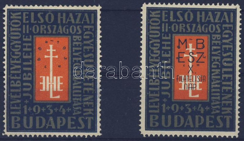 Leírás: 1934 LEHE Bélyegkiállítás és Bélyegnap 2 db reklámbélyeg