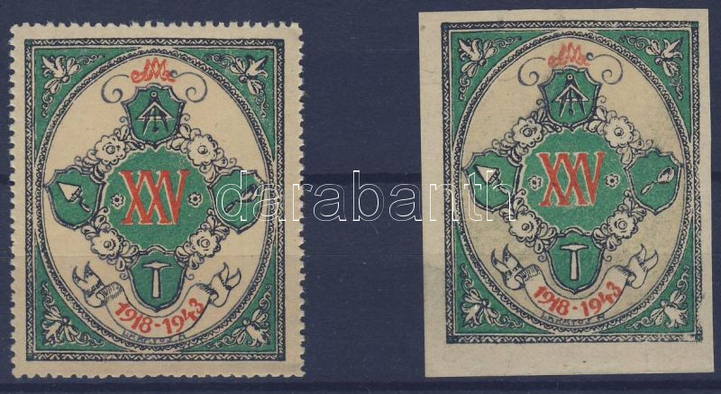 Leírás: 1943 Szabadkőműves páholy fogazott + vágott levélzáró