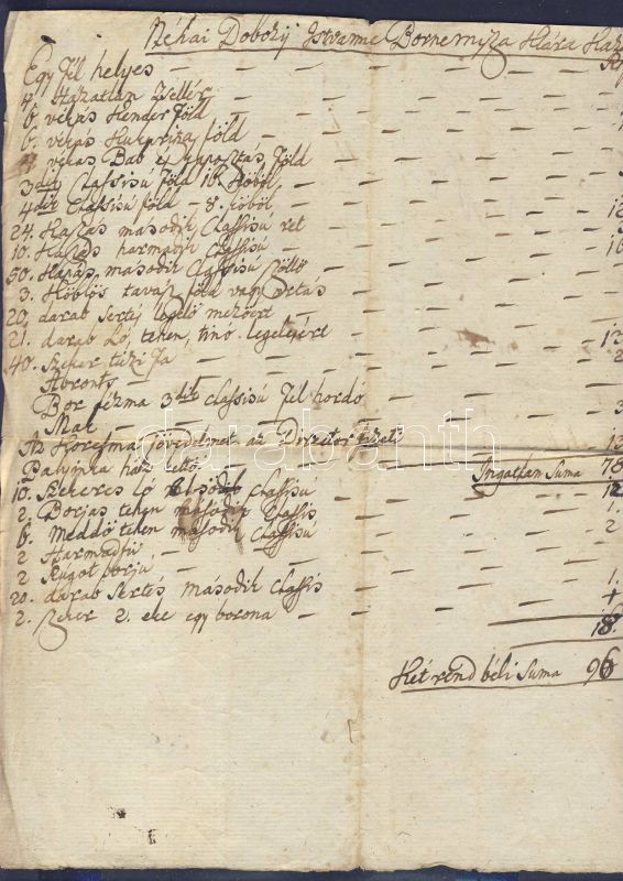 cca 1800 Dobozy Istvánné Bornemissza Klára hagyatéki leltára (hajtások... https://www.darabanth.com/hu/120-Gyorsarveres/120.0/Festmeny-mutargy-papirregiseg-egyeb/Tortenelmi-dokumentumok-Historic-documents~372/cca-1800-Dobozy-Istvanne-Bornemissza-Klara-hagyateki-leltara-hajtasoknal-kopott~II323838