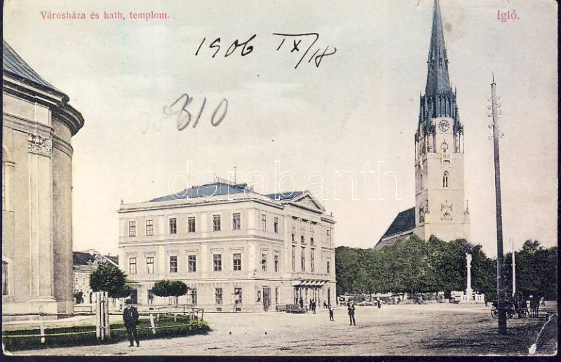 Igló town hall and church (small tear) https://www.darabanth.com/hu/120-Gyorsarveres/120.0/Kepeslapok/Felvidek-Slovakia~5/Iglo-town-hall-and-church-small-tear~II321619