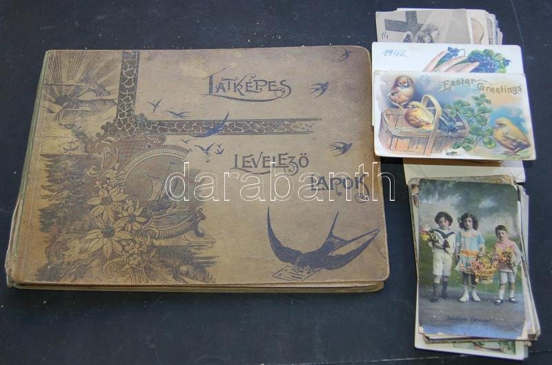 Leírás: 189 darab háború előtti művész és üdvözlőlap benne lithokkal + régi képeslapalbum / 189 vintage artist and thematic card + old pc. album