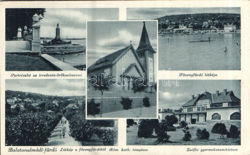 Leírás: Balatonalmádi irredenta örökmécsessel és a Zsófia gyermekszanatóriummal