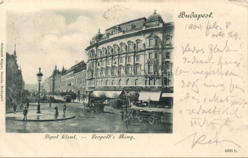 Leírás: Budapest VI. Lipót körút a Café Vígszínházzal és Sturm József Pilseni Sörcsarnokával (EK)