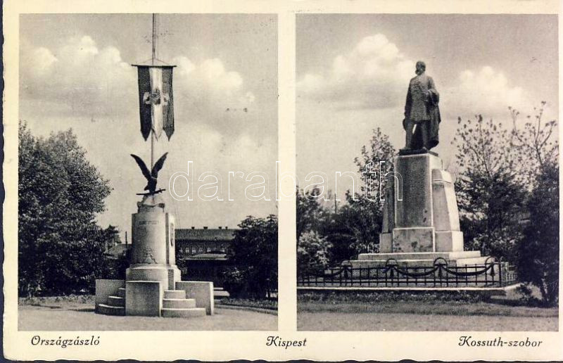 Budapest XIX. Kispest országzászló és Kossuth szobor https://www.darabanth.com/hu/120-Gyorsarveres/120.0/Kepeslapok/Magyarorszag-Hungary~3/Budapest-XIX-Kispest-orszagzaszlo-es-Kossuth-szobor~II323034