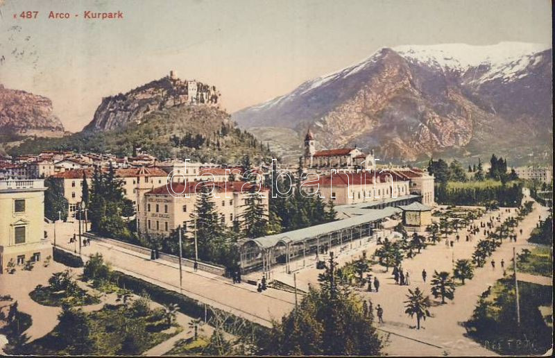 Arco park with the Hotel Pension of Oscar Schlegel https://www.darabanth.com/hu/120-Gyorsarveres/120.0/Kepeslapok/Olaszorszag-Italy~291/Arco-park-with-the-Hotel-Pension-of-Oscar-Schlegel~II324357