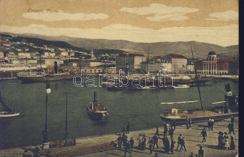 Leírás: Trieste port with the Serbian Orthodox Church of Saint Spyridon
