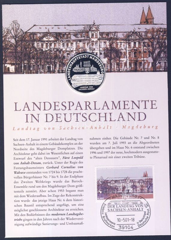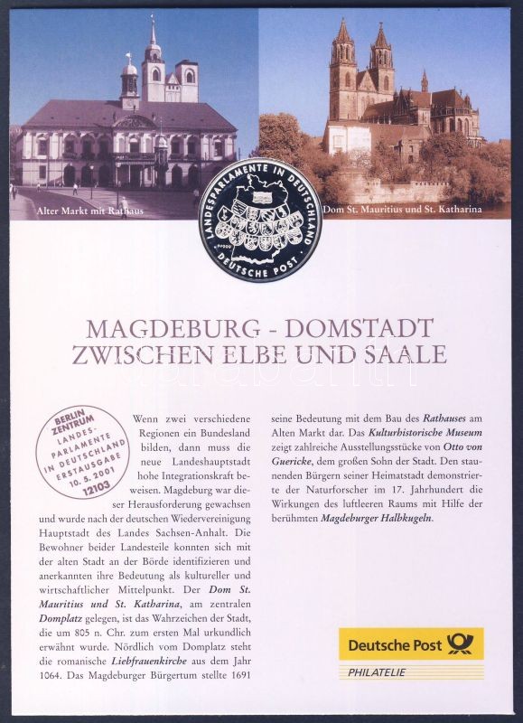 Leírás: Németország 2001. "Mainz" Ag (999) emlékérem 15g kisalakú emlékíven, alkalmi bélyegzős bélyeggel T:PP