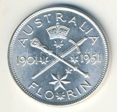 Leírás: Ausztrália 1951. 1Fl Ag "50 éves jubileum" T:1-/2+
