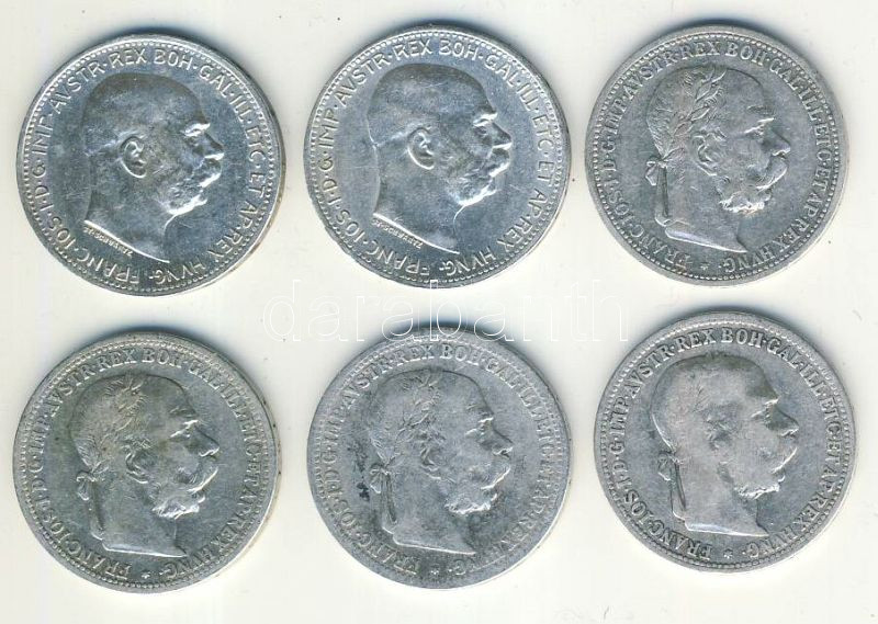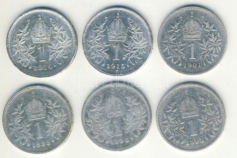 Leírás: Ausztria 1893-1915. 1K Ag (6x) mind klf évszámmal T:2,3