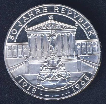 Leírás: Ausztria 1968. 50Sch Ag "50 éves a Köztársaság" T:PP
