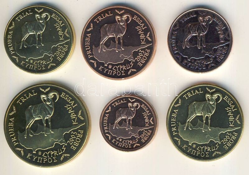 Leírás: Ciprus 2003. 1c-50c össz. 6 klf db próbaveret T:BU