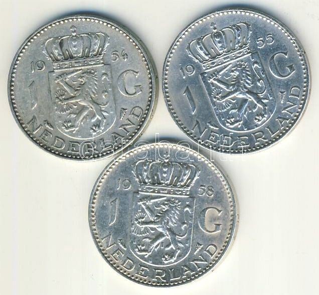 Leírás: Hollandia 1954-58. 1G Ag (3x) klf évszámmal T:2/3