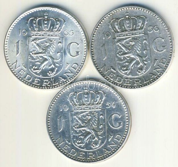 Leírás: Hollandia 1954-65. 1G Ag (3x) klf évszámmal T:2/3
