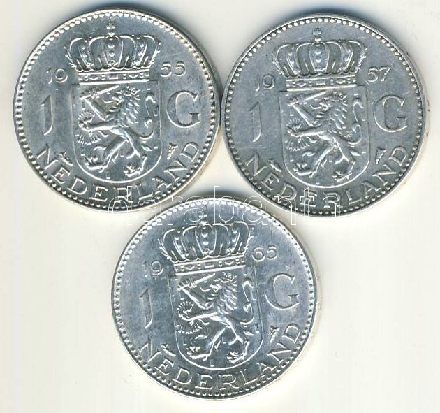 Leírás: Hollandia 1955-65. 1G Ag (3x) klf évszámmal T:2/3