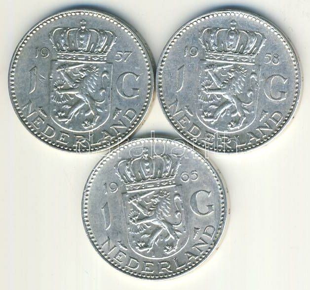 Leírás: Hollandia 1957-65. 1G Ag (3x) klf évszámmal T:2/3