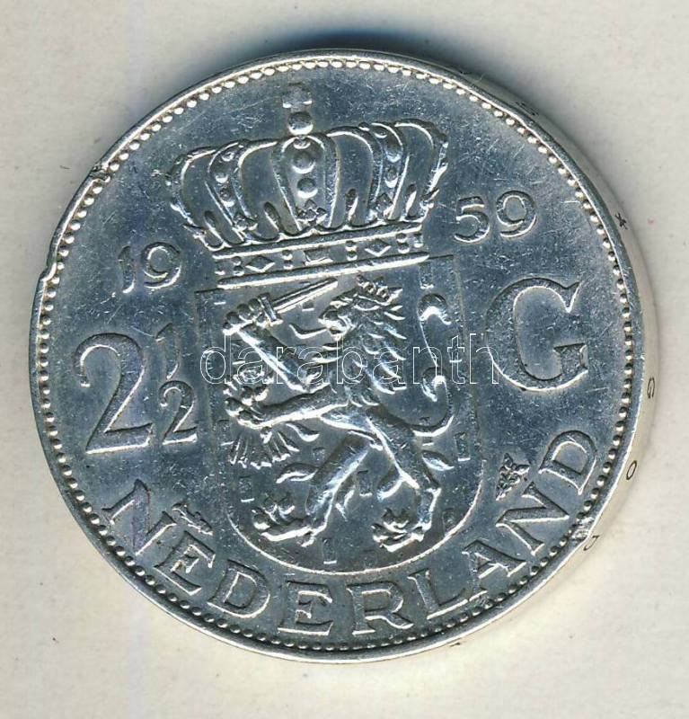 Hollandia 1959. 2 1/2G Ag "Julianna" T:2 ph. https://www.darabanth.com/hu/120-Gyorsarveres/120.0/Numizmatika/Kulfoldi-fem-es-ezustpenzek-a-kozepkortol-napjainkig~30266/Hollandia-1959-2-12G-Ag-Julianna-T2-ph~II325098