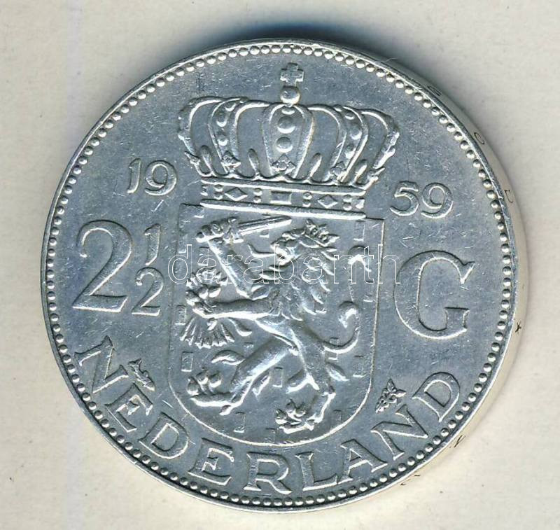 Hollandia 1959. 2 1/2G Ag "Julianna" T:2 ph. https://www.darabanth.com/hu/120-Gyorsarveres/120.0/Numizmatika/Kulfoldi-fem-es-ezustpenzek-a-kozepkortol-napjainkig~30266/Hollandia-1959-2-12G-Ag-Julianna-T2-ph~II325099
