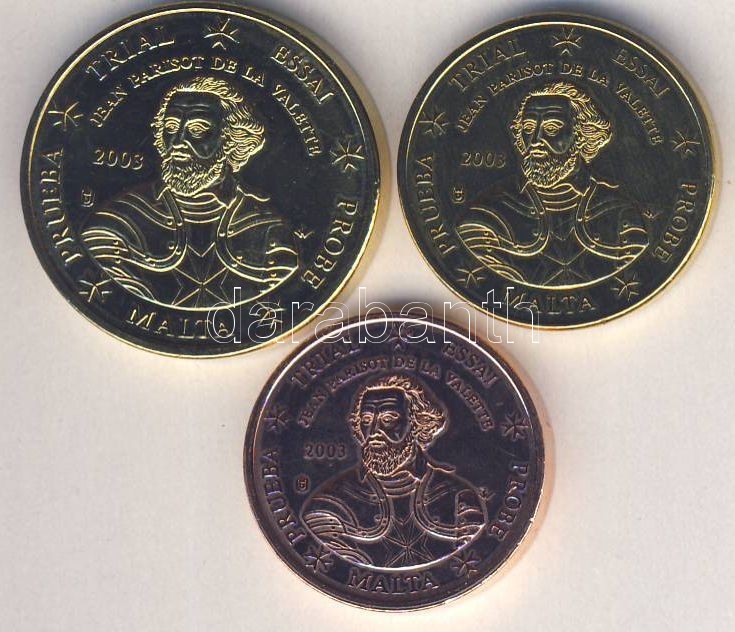 Leírás: Málta 2003. 2c + 10c + 20c össz. 3 db próbaveret T:BU