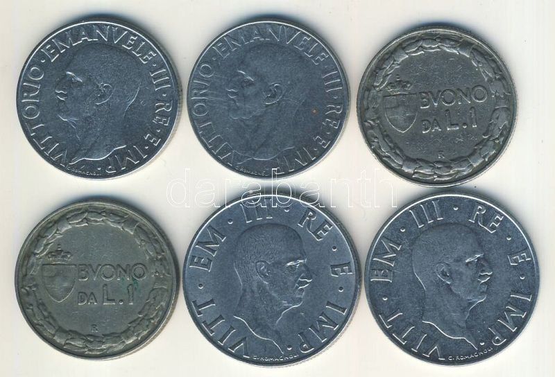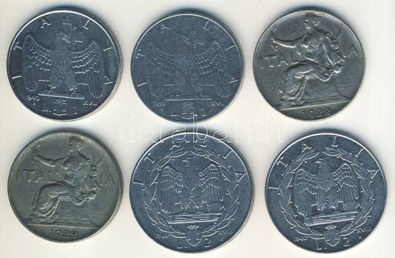 Leírás: Olaszország 1922-1940. 1L (4x) 2 klf db + 2L (2x) T:2,3