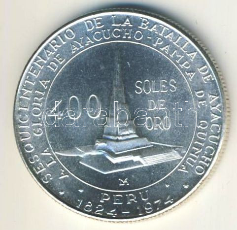 Peru 1976. 400S Ag "Ayacucho-i csata" T:BU https://www.darabanth.com/hu/120-Gyorsarveres/120.0/Numizmatika/Kulfoldi-fem-es-ezustpenzek-a-kozepkortol-napjainkig~30266/Peru-1976-400S-Ag-Ayacucho-i-csata-TBU~II326428
