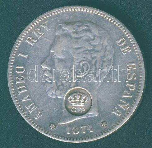 Spanyolország 1871. 5P ellenjegyes régebbi ffm hamisítványa (fake) https://www.darabanth.com/hu/120-Gyorsarveres/120.0/Numizmatika/Kulfoldi-fem-es-ezustpenzek-a-kozepkortol-napjainkig~30266/Spanyolorszag-1871-5P-ellenjegyes-regebbi-ffm-hamisitvanya-fake~II312404