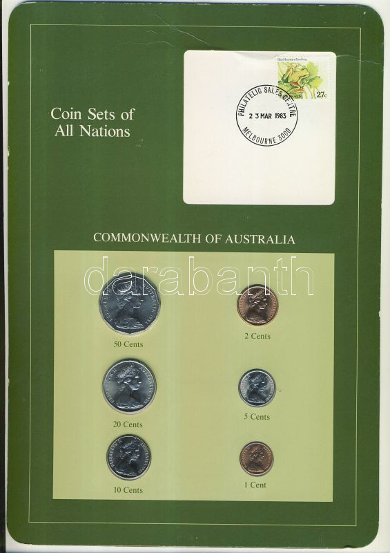 Ausztrália 1983. 1c-50c 6klf db, kereskedői szettben, bélyeges díszlap... https://www.darabanth.com/hu/120-Gyorsarveres/120.0/Numizmatika/Kulfoldi-szettek-es-probaszettek~30265/Ausztralia-1983-1c-50c-6klf-db-kereskedoi-szettben-belyeges-diszlapon-T1~II325967