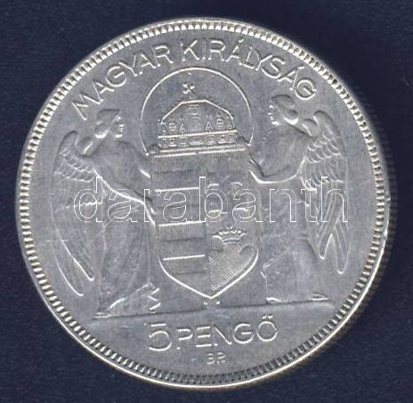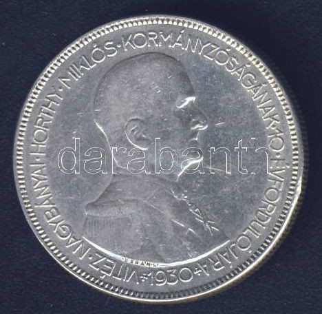 Leírás: 1930. 5P Ag "Horthy jobbra" T:2-/2