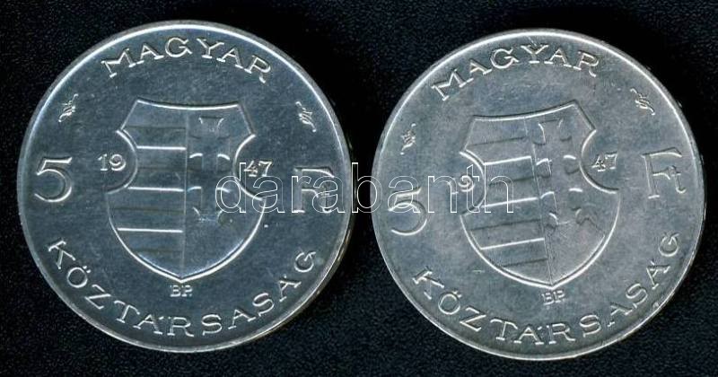 1947. 5Ft Ag "Kossuth" (2x) T:2,3