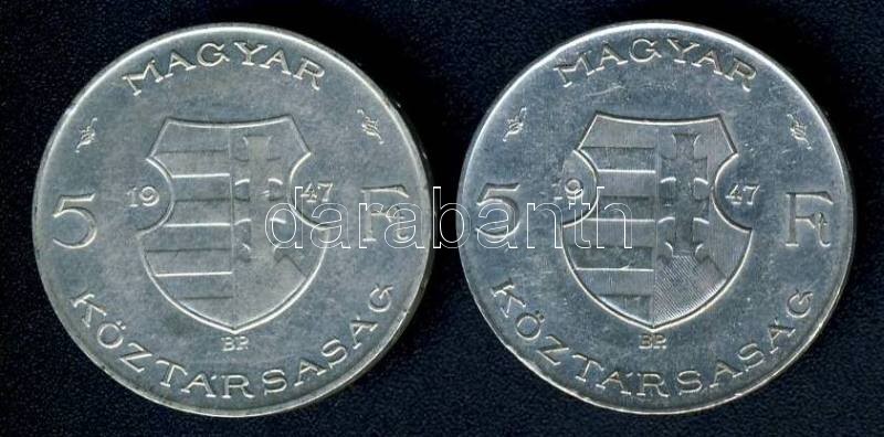 Leírás: 1947. 5Ft Ag "Kossuth" (2x) T:2/3,3 ph.