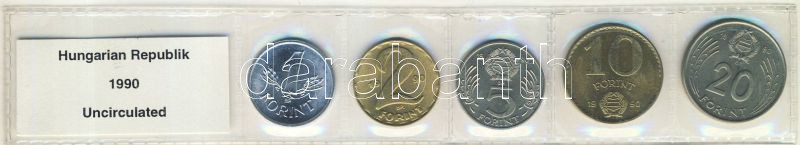 Leírás: 1990. 1Ft-20Ft 5klf db, szettben, "Kádár" címerrel, de "Köztársaság" felirattal! T:1