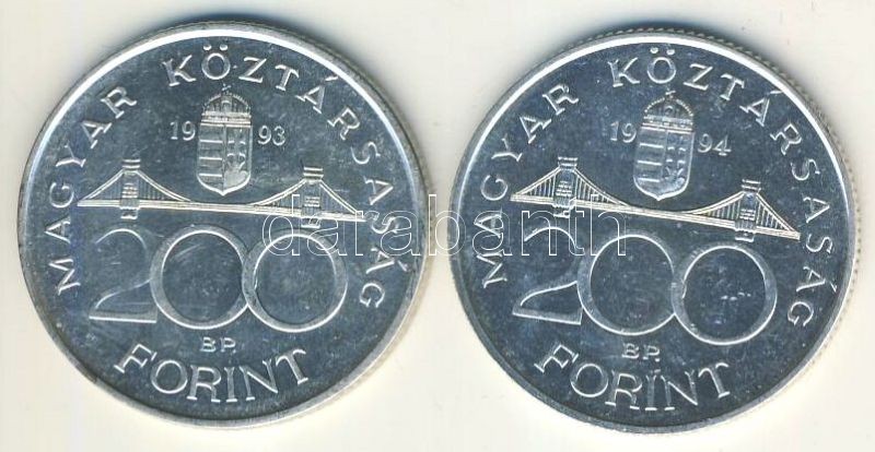 Leírás: 1993-94. 200Ft Ag "MNB" + "Deák" T:BU,2