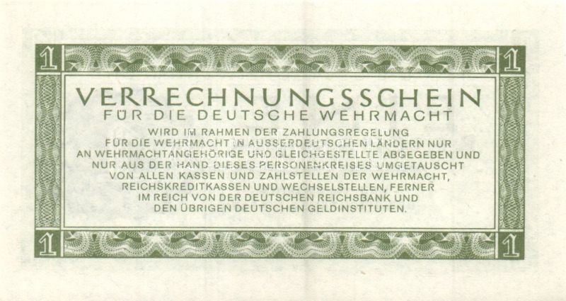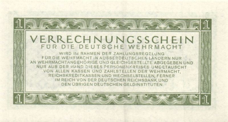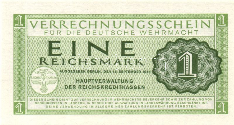 Leírás: Német 3. Birodalom / Német Véderő(Wehrmacht) katonai pénze 1944. 1RM (5x) T:I