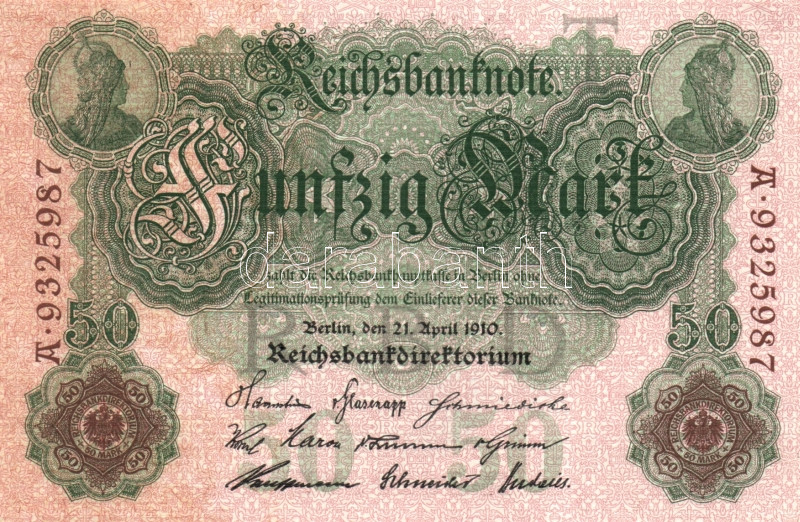 Német Birodalom / Császárság 1910. 50M (2x) egymás utáni sorszámokkal ... https://www.darabanth.com/hu/120-Gyorsarveres/120.0/Numizmatika/Nemet-BirodalomCsaszarsagWeimari-KoztarsasagNemet-AllamokNSZKNDKmellekteruletekgya~30253/Nemet-Birodalom-Csaszarsag-1910-50M-2x-egymas-utani-sorszamokkal-TI-~II316926