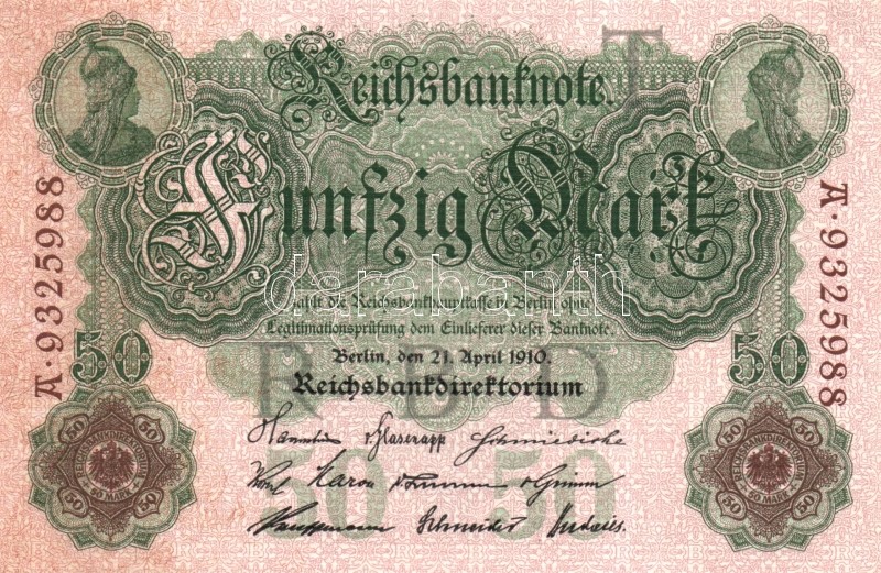 Leírás: Német Birodalom / Császárság 1910. 50M (2x) egymás utáni sorszámokkal T:I-