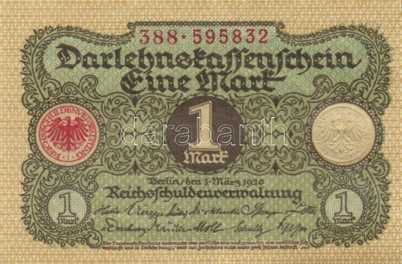 Leírás: Német Birodalom / Weimari Köztársaság 1920. 1M (4x) egymás utáni sorszámokkal T:I,I-
