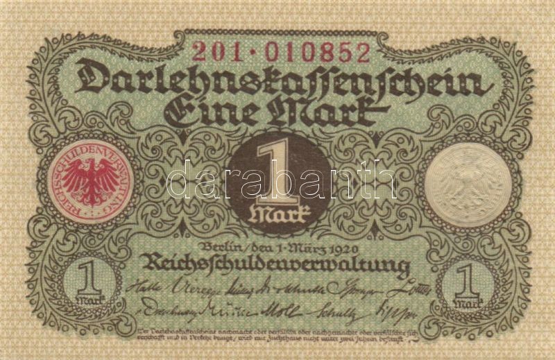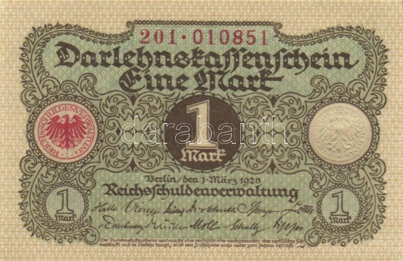 Leírás: Német Birodalom / Weimari Köztársaság 1920. 1M (4x) egymás utáni sorszámokkal T:I
