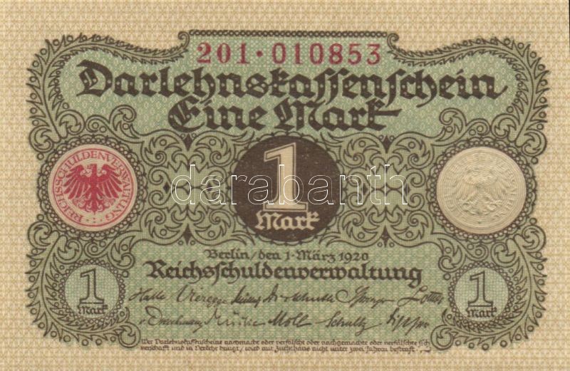Német Birodalom / Weimari Köztársaság 1920. 1M (4x) egymás utáni sorsz... https://www.darabanth.com/hu/120-Gyorsarveres/120.0/Numizmatika/Nemet-BirodalomCsaszarsagWeimari-KoztarsasagNemet-AllamokNSZKNDKmellekteruletekgya~30253/Nemet-Birodalom-Weimari-Koztarsasag-1920-1M-4x-egymas-utani-sorszamokkal-TI~II319738