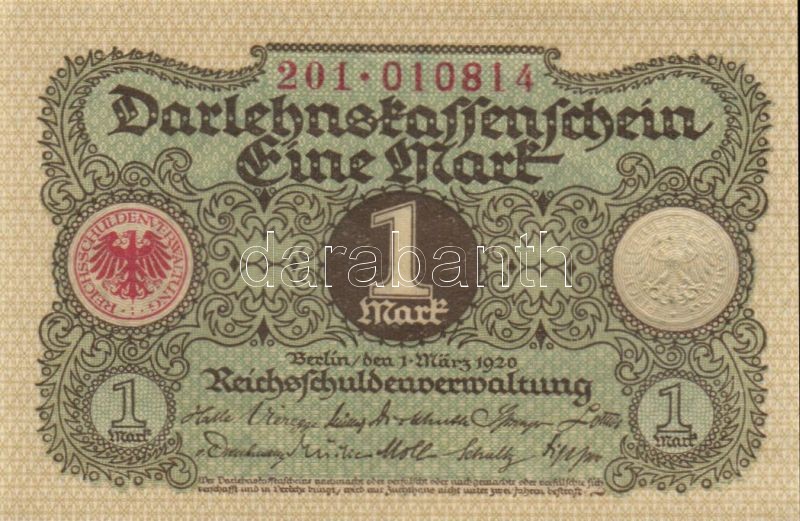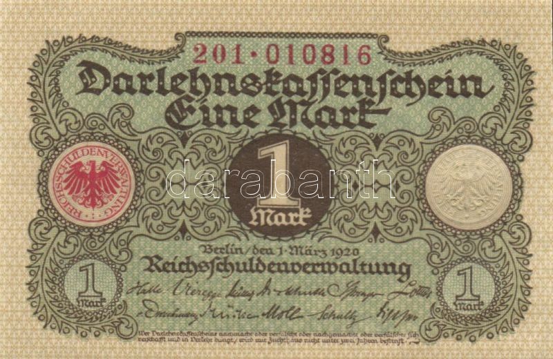Leírás: Német Birodalom / Weimari Köztársaság 1920. 1M (5x) egymás utáni sorszámokkal T:I